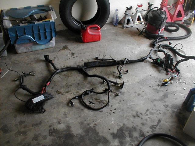 A wiring harness is retrieved from a 1987 Chevrolet Celebrity Eurosport