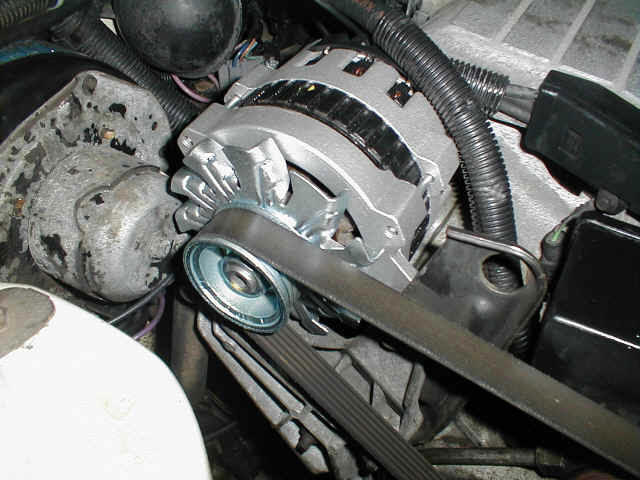 A newly purchased high powered aftermarket alternator ensures that the amplifier will be fed sufficiently