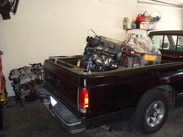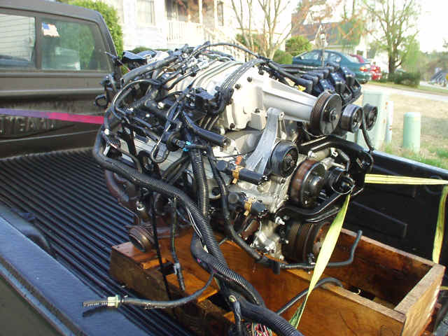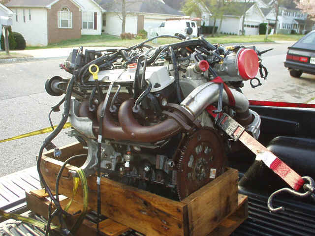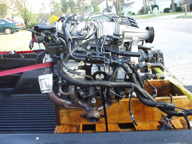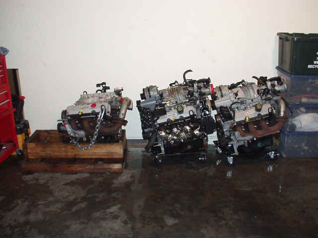 Pictured here: My garage full of 3800SC Series II engines. One engine (under plastic tarp) has only 3,000 miles on it and will be installed in a friend's car. The 3800SC with the "supercharger cover" installed is an engine in which the starter boss was damaged in a wreck. The Supercharger and fuel system from THAT engine will be moved to the 3,000 mile engine located under the plastic tarp.