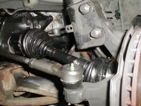 Passenger's Side CV Axle goes in without problems. Also note the newly replaced tie rod ends.