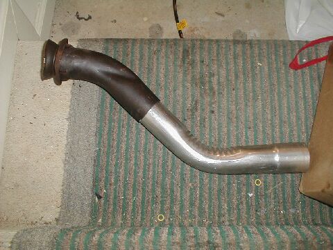 This exhaust down pipe was created using the OEM 92' Cadillac Deville flange and downpipe PLUS an extension with a bend from AutoZone
