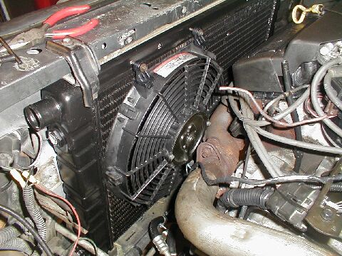 This is the "PULLER" cooling fan. It will require slight modification to clear the front exhaust manifold